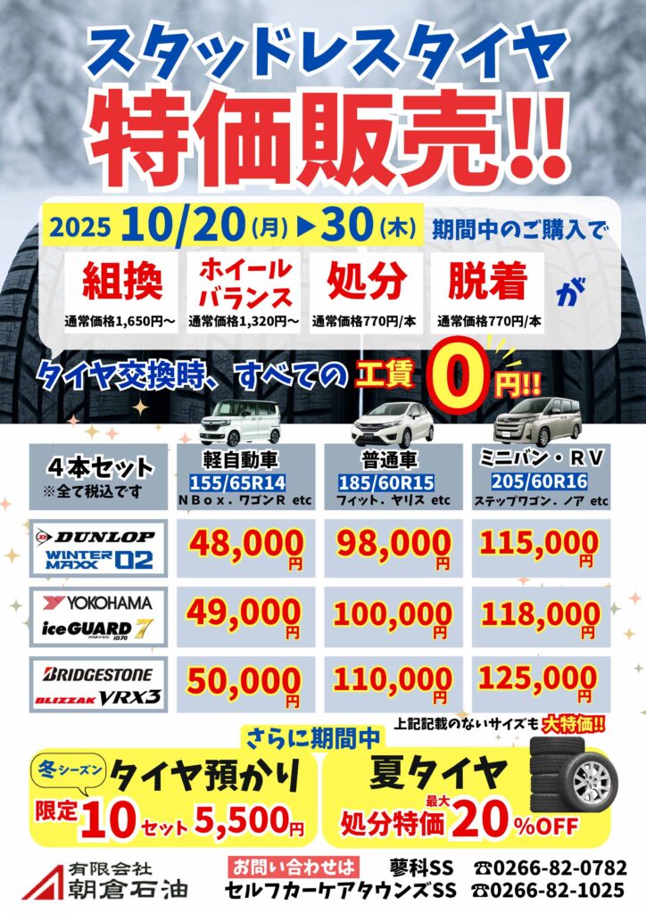 🔥 特典① タイヤ特価販売&購入で工賃サービス!