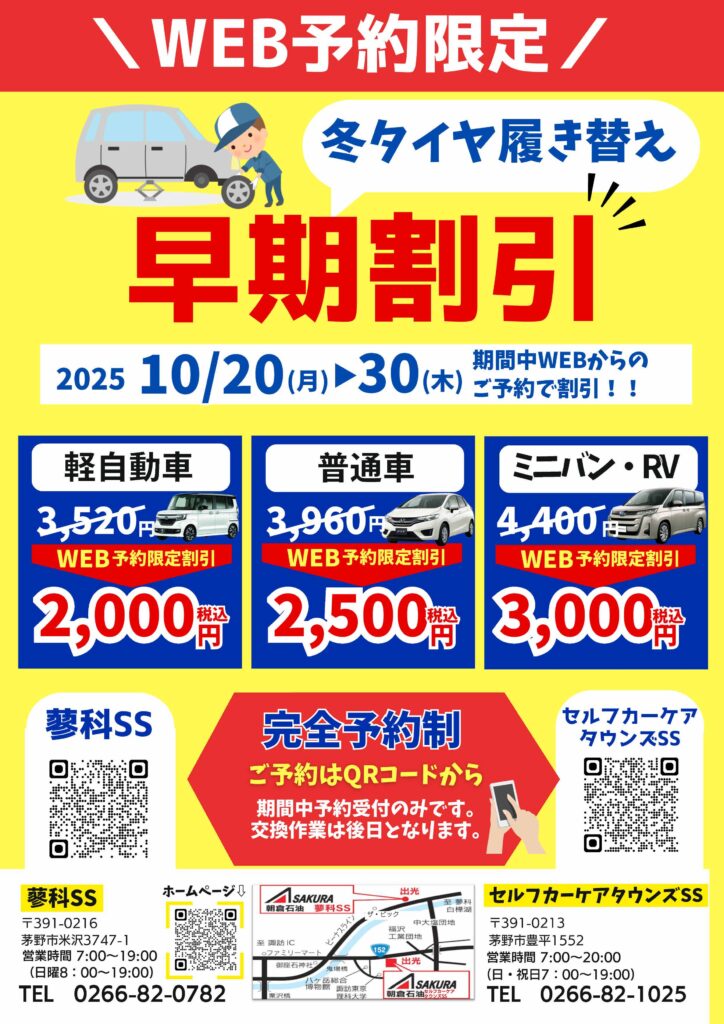 💻 特典② WEB予約でタイヤ履き替え早期割引!