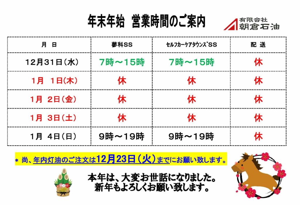 年末年始の営業につきまして、下記のとおりご案内申し上げます。