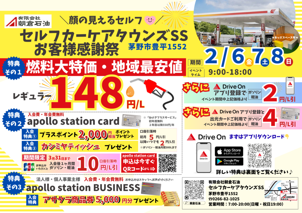 いつも朝倉石油 セルフカーケアタウンズSSをご利用いただき 誠にありがとうございます!