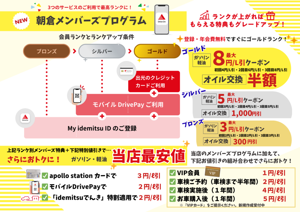 ★朝倉メンバーズプログラム登録でもっとお得に給油出来ちゃいます★